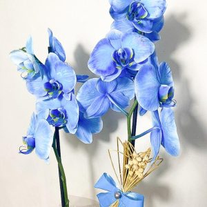 Orquídea Phalaenopsis Azul + Cachepô de Kraft decorado + Ferreiro Collection